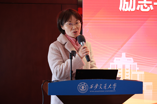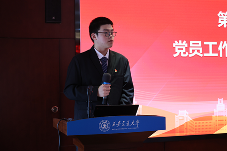 “数励先锋”党员工作站站长丁俊亦同志代表工作站进行发言。他从精谋工作思路、创新工作方法、提升专业能力三方面阐述了未来工作计划,表示将充分发挥双院协同育人的桥梁作用,加强“党旗红”与“学科蓝”融合发展,传承弘扬好西迁精神,以新一代交大数学人的理性与热忱,共同把党员工作站打造成为思想引领有高度、服务同学有温度、攻坚克难有力度的坚强战斗堡垒,引导青年党员在服务奉献中彰显时代风采。