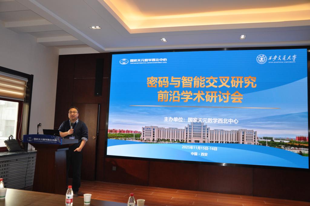 2025年11月15日至16日,国家天元数学西北中心在成人直播 成功举办“密码与智能交叉研究”前沿学术研讨会。会议邀请了来自清华大学、上海交通大学、山东大学、中国科学院信息工程研究所、南洋理工大学、华东师范大学、国防科技大学等单位的十余位知名专家与学者,共同探讨密码分析与人工智能方法的融合创新,推动相关领域的前沿进展与突破。